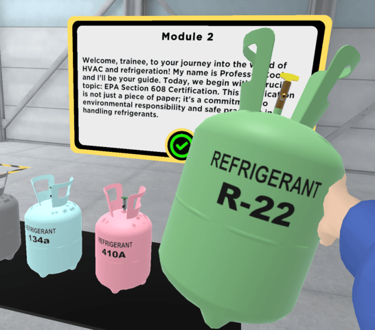 Prepare students for success in the heating, ventilation, and air conditioning industry with our immersive HVAC training experience. This course combines AI-driven learning with hands-on virtual reality training to build foundational knowledge, safety awareness, and technical skills aligned with real-world HVAC careers and EPA Section 608 certification preparation.